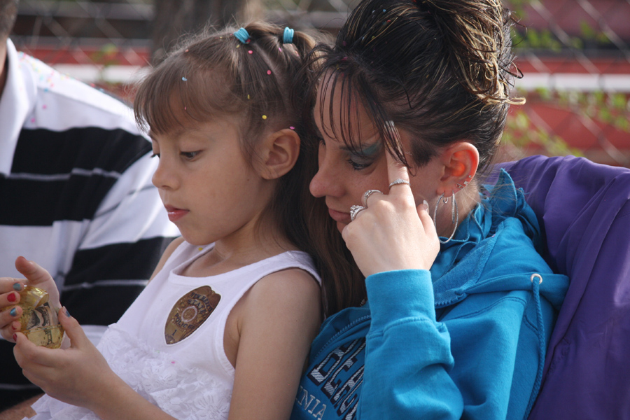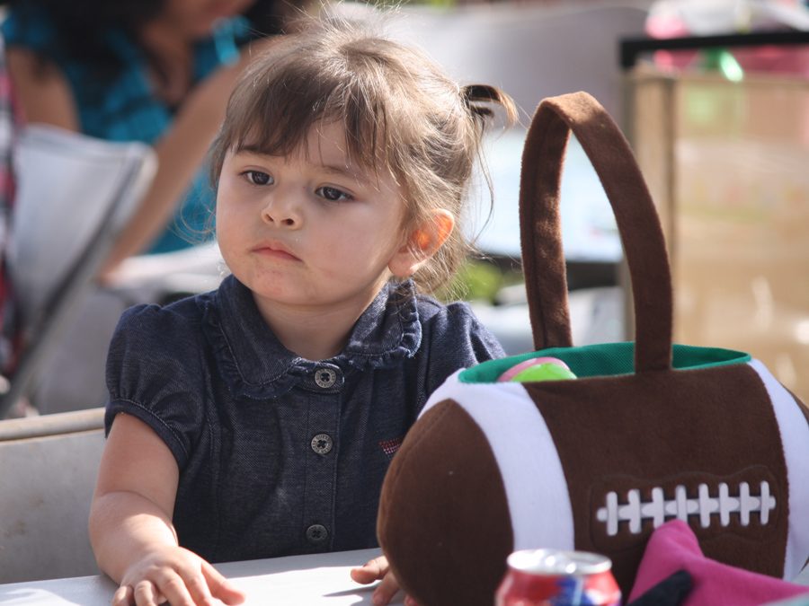 Easter Sunday festivities in 2015. Here, Monica swings toward a water balloon.